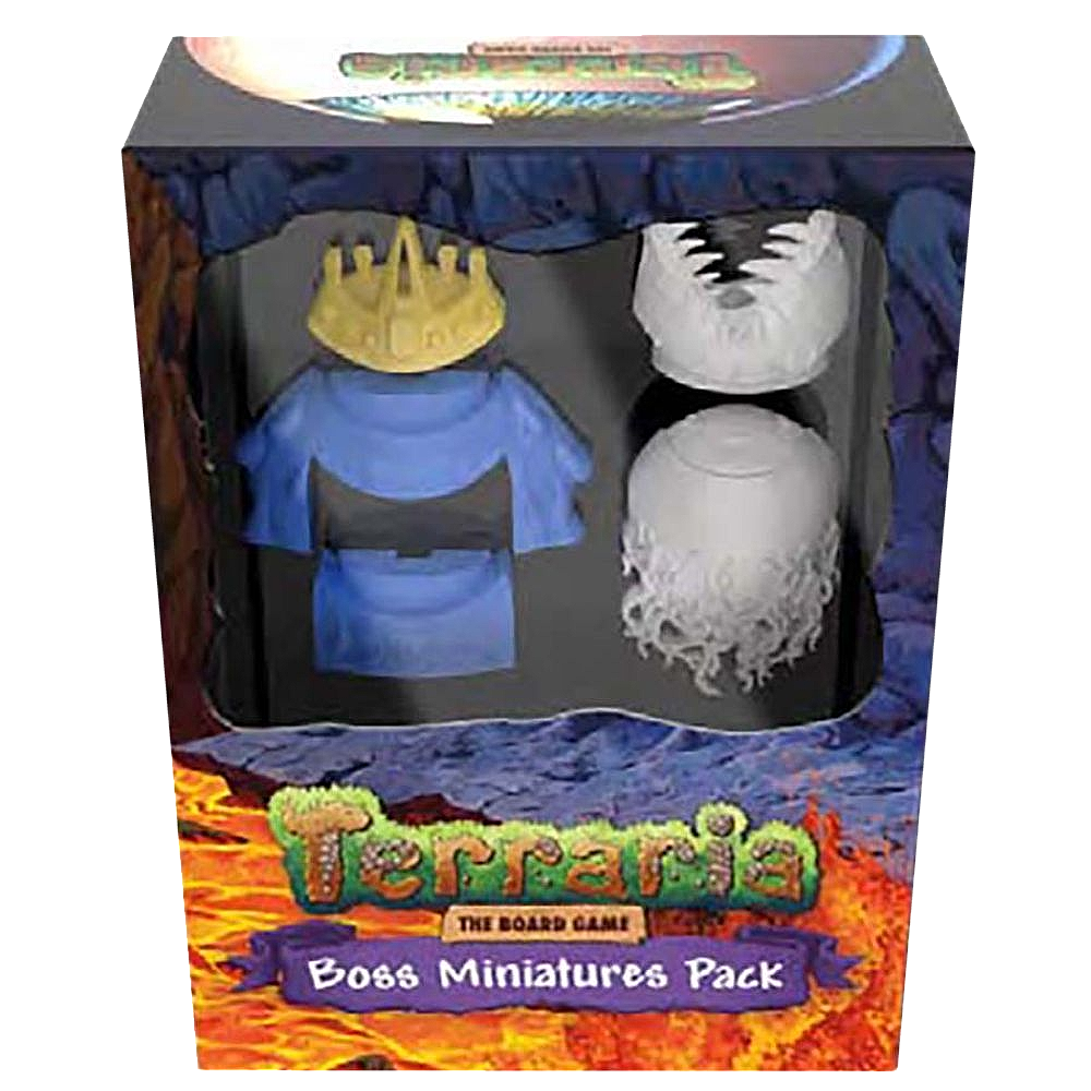 Terraria: The Board Game que incluye 6 miniaturas de jefes icónicos en plástico de diferentes colores. Diseñadas para mejorar la inmersión y el impacto visual en mesa. Producto oficial con licencia Terraria